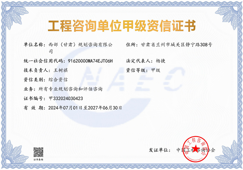 6月下旬,经中国工程咨询协会评审,米兰网页版登录入口旗下西部(甘肃)规划咨询有限公司,成功取得工程咨询单位综合甲级资信和7项专业甲级资信,实现了我省工程咨询“综甲”从无到有的历史性突破。西部(甘肃)规划咨询公司是米兰网页版登录入口着眼深化改革、优化资源配置、培育发展新业务而创建的综合咨询技术服务企业。公司围绕贯彻落实国家重大战略和全省发展规划,组建专家智库团队,主动开展战略性、前瞻性研究,先后高质量完多项重大咨询任务。