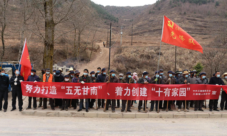 2022年4月,根据王旗镇安排,驻村帮扶工作队员会同其他镇村干部组织群众数十人,在洮河西岸磨沟段开展了以“党旗高擎、党徽常耀、绿色出行、保护环境”为主题的义务植树活动,共栽下4000余棵松树苗,掀起了植树造林的热潮。